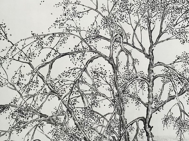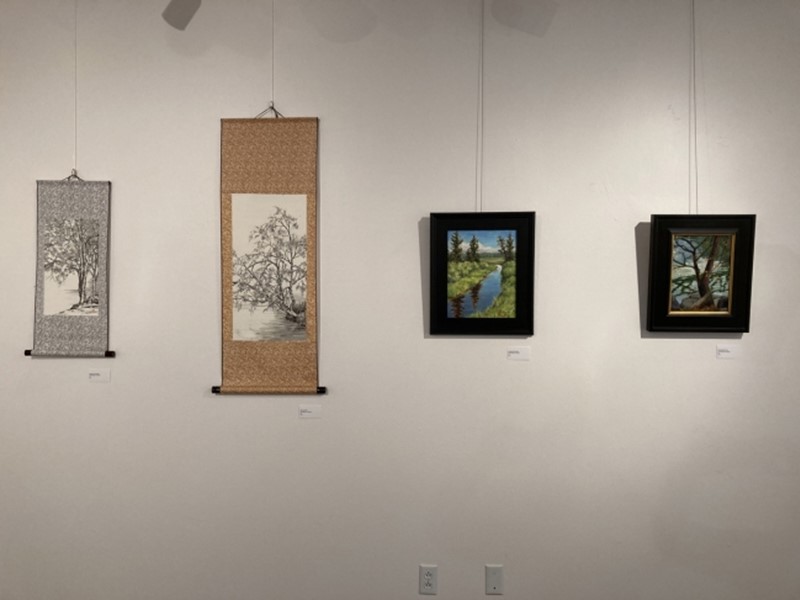 This spring, 2020, with social distancing and ‘stay at home’ orders, I decided to take an online Chinese Brush Painting class with artist Henry Li. One of the first things he explained was that Chinese artists throughout history created landscape paintings in their homes as a way of looking inwards during times of social and political turmoil. They wanted to make landscapes that would allow one’s mind to travel. All of the ink paintings on scrolls likewise were created in my studio but are still inspired by the Idaho Falls area. You may have noticed, I enjoy the huge, beautiful trees that grow here.