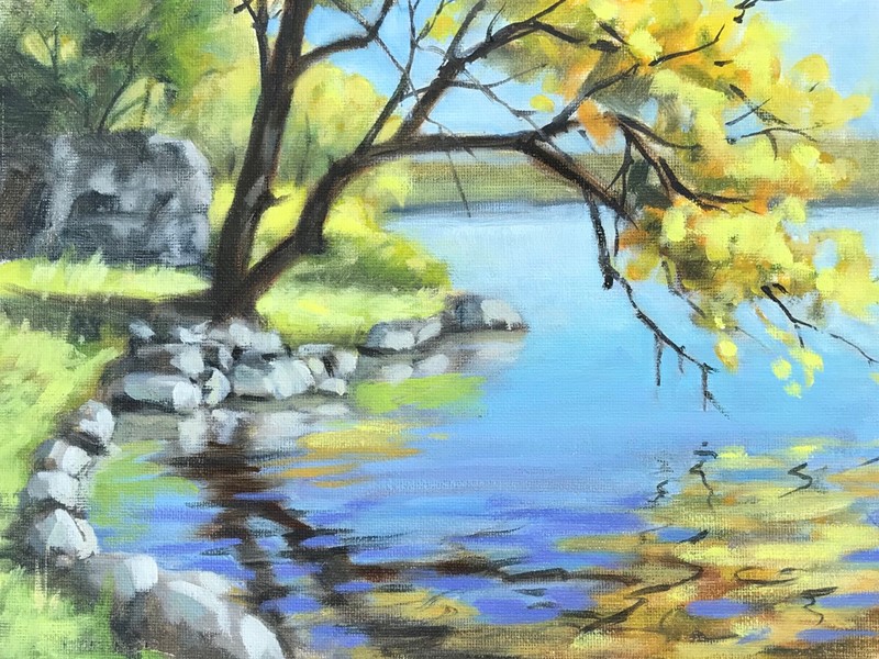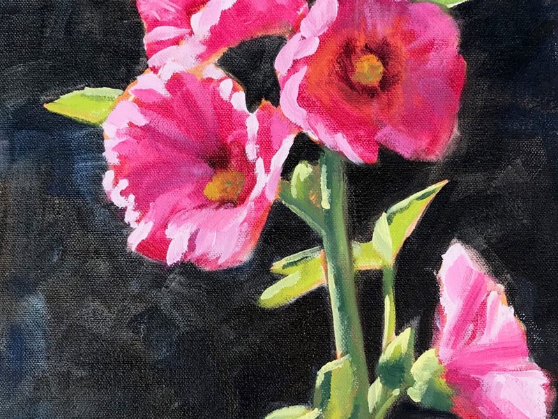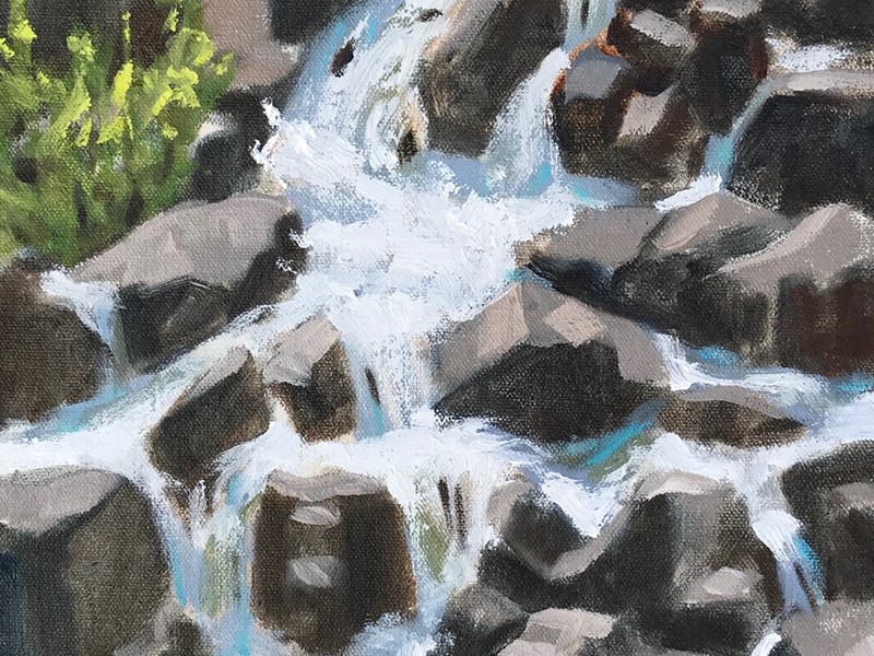 The framed oil and acrylic paintings in this show were done in plein air in 2019. They are inspired by Idaho Falls and its surroundings and painted in the company of friends and fellow artists. I am very appreciative of the local art community who came out to paint and of my wonderful gardening neighbors who allowed me to set up in their yards.