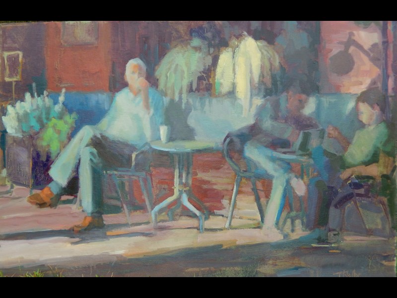 "It’s escapism. I continue to paint until I feel I can walk around in the painting. Often my arm seems to move on its own. The first five minutes of a painting are the most exciting and creative when the outcome is all possibility. I’m a loose, messy oil painter and I experiment a lot. I am influenced by color, color harmony and balance of shapes with a solid composition. As long as a subject provides an inspiration, I am not attached to any particular subject.