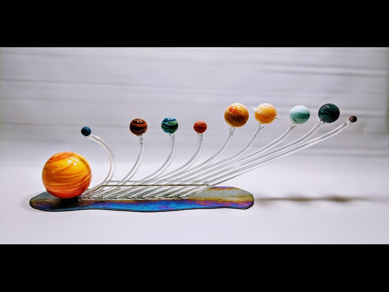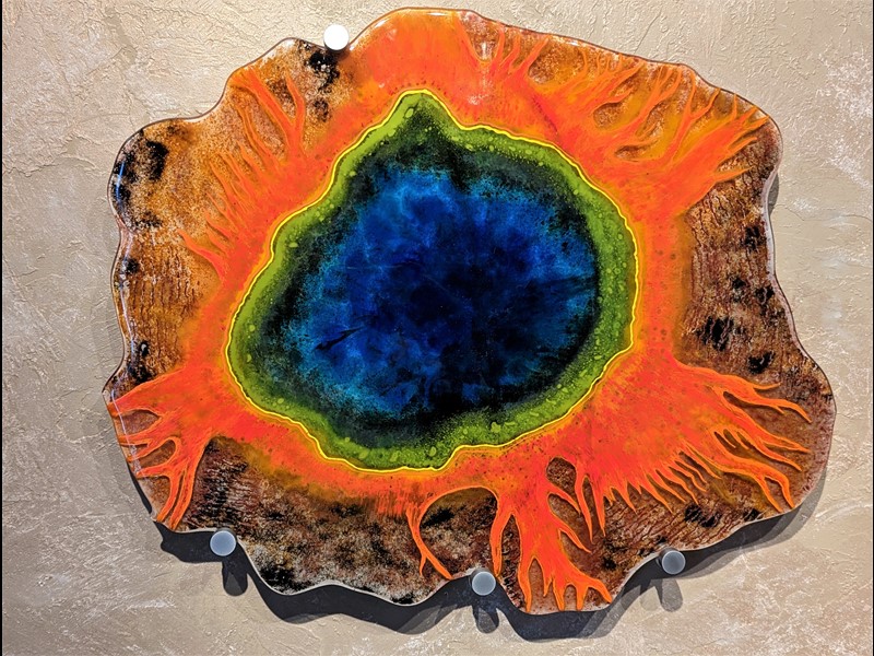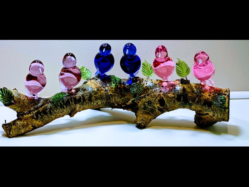 36 years ago, the age of the Internet was far from a reality in Idaho, so Russel made a trip to the Public Library to research this unique art form. That desire to learn more about glassblowing would change his life’s direction forever. His research found two informative books on the "how-tos" of flameworking and from that point on, he began forging his artistic path as a glass artist. After about 18 years of honing his skills as a glass artist Russel had the opportunity to take over the scientific glass shop at the Idaho National Laboratory. Russel's skill and creativity as a scientific glass blower (now retired) have helped him to have a greater understanding of the manipulation of glass and has driven him to new levels in his artwork. Whether it be at the torch sculpting hard glass into wildlife, at the kiln creating colorful vases, bowls and flowing wall art, Russel holds a deep knowledge and appreciation for the art and science of Glassblowing.