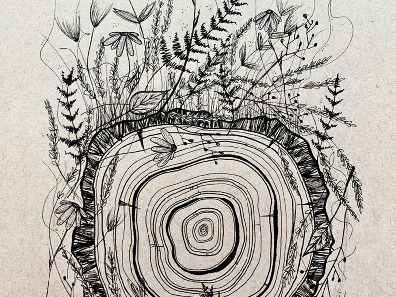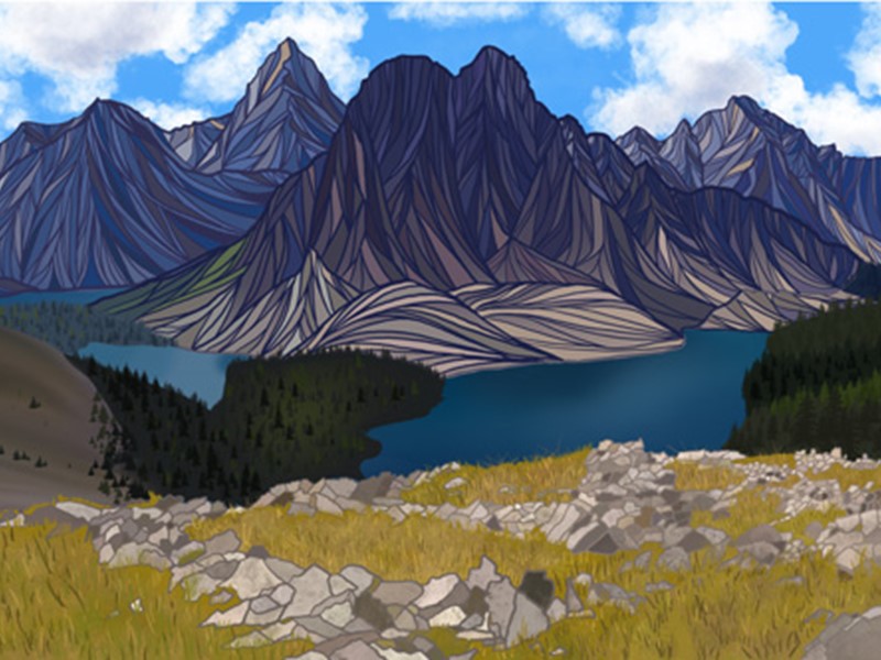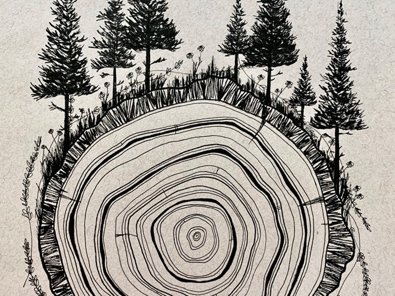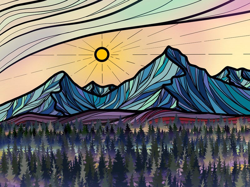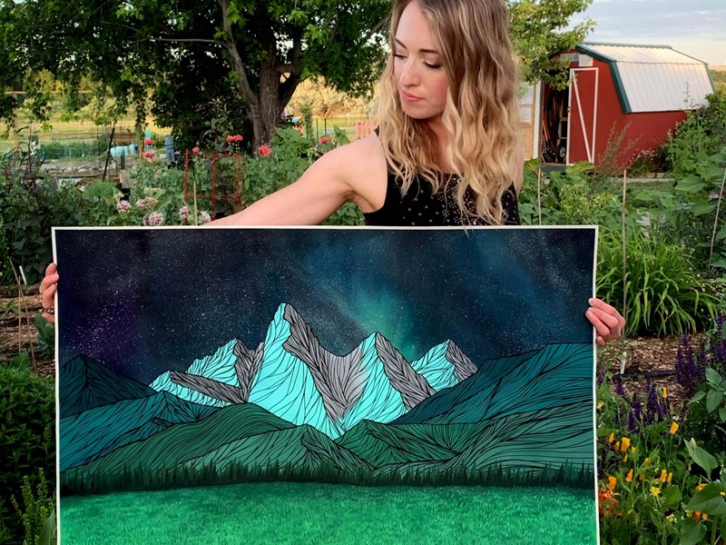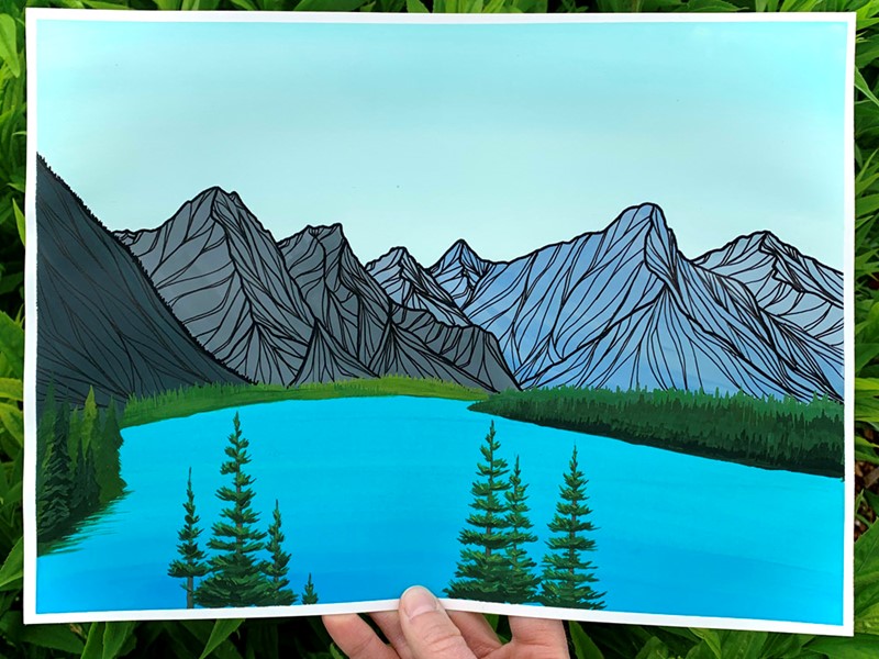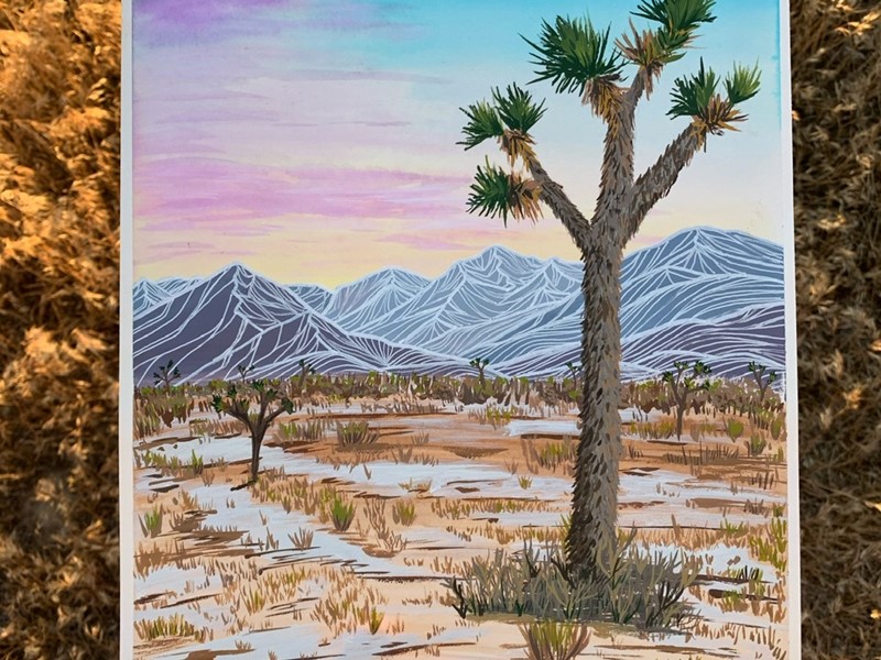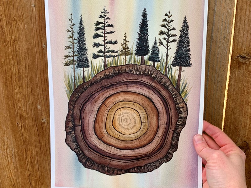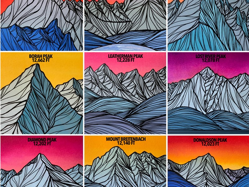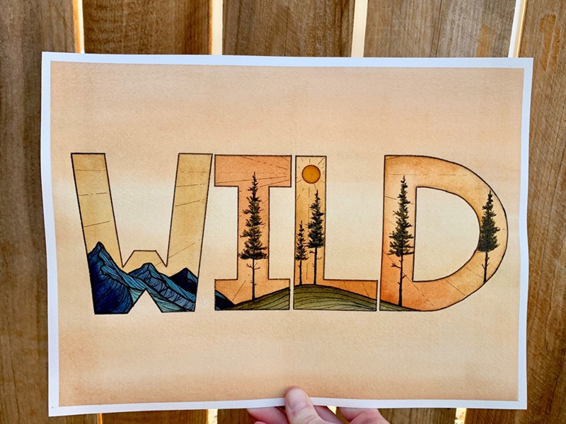 My artwork is inspired by my connection to the great outdoors. I express this by adding mountains and trees to still life or lettering, incorporating flowers into a tree ring, or adding my own colors, textures, and details to a favorite mountain range. Idaho has always been in my home and the beauty that can be found here keeps fueling my inspiration.