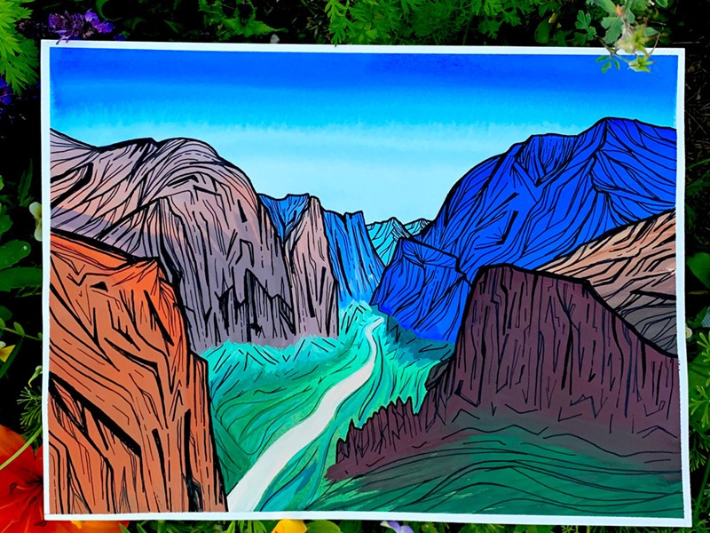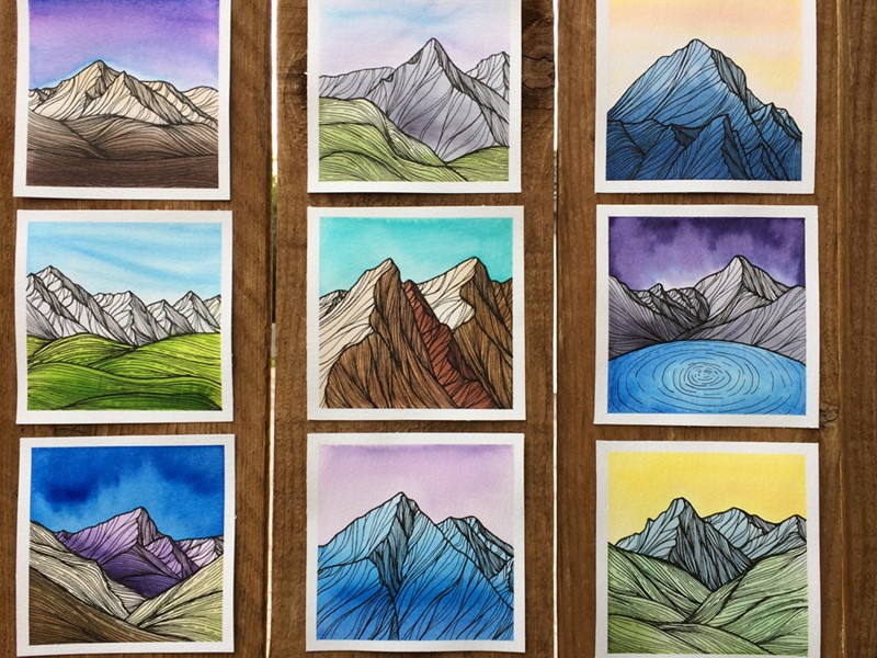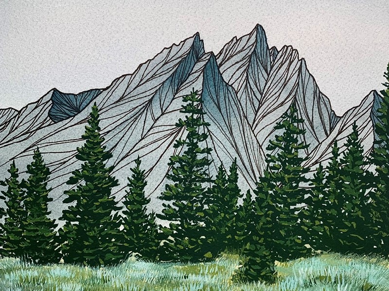 "I view myself as an accidental artist because this creative journey was somewhat unintentional. I graduated from Idaho State University with a degree in Secondary Education and Statistics, and after teaching for several years I decided I needed a creative outlet. I started with simple sketches then progressed onto adding a lot of details using linework. Linework has continued to be a key component of my artistic style as I have experimented with other mediums such as watercolor, gouache, and digital. My initial pieces involved only watercolor and linework. The way the colors flow, bleed, and layer along with the sharp contrast of ink can hold my focus for hours at a time. I continue to learn new techniques and experiment with different materials in an effort to bring variety and to perfect my process.