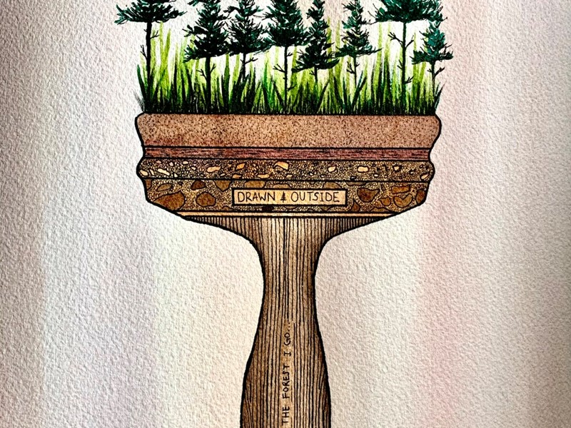 I initially intended this to be an entirely personal artistic journey but I’m happy to have the opportunity to share it. I have participated in charity auctions, commission work, collaborations with other small businesses, artisan events, and now this wonderful gallery. I have prints and gear available for purchase on my website, www.drawnoutsideart.com. If you are interested in purchasing an original please send me an email at drawn.outside.art@gmail.com.