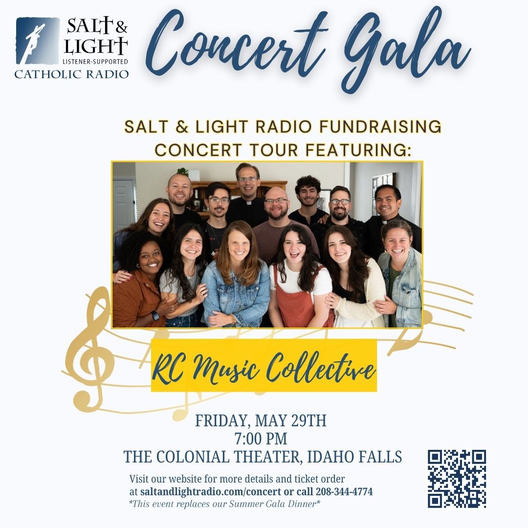 Salt & Light Radio is thrilled to announce the upcoming Concert Gala, a concert fundraiser featuring the RC Music Collective, and we want YOU to be part of it! Join us for a beautiful evening of inspiring music featuring the amazing RC Music Collective formed from the vibrant and beautiful Regnum Christi apostolate . We look forward to celebrating with you and are deeply grateful for your support as we work to fulfill our mission across the Diocese of Boise.
