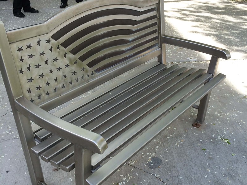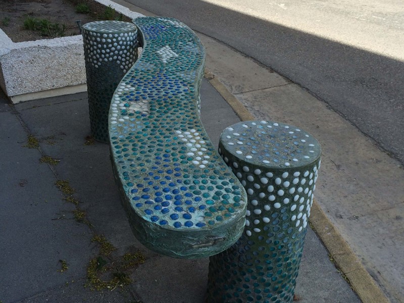 The art benches were selected from over 250 submitted designs by area artists. Funding came from local businesses and individuals.